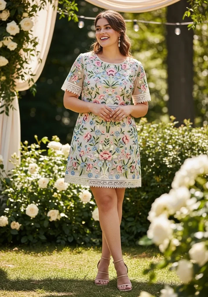 An embroidered mini dress adds intricate detail that instantly elevates your outfit. The delicate stitching creates a soft, artistic feel that works beautifully for a romantic summer wedding setting. Light fabrics keep the dress breathable and comfortable.