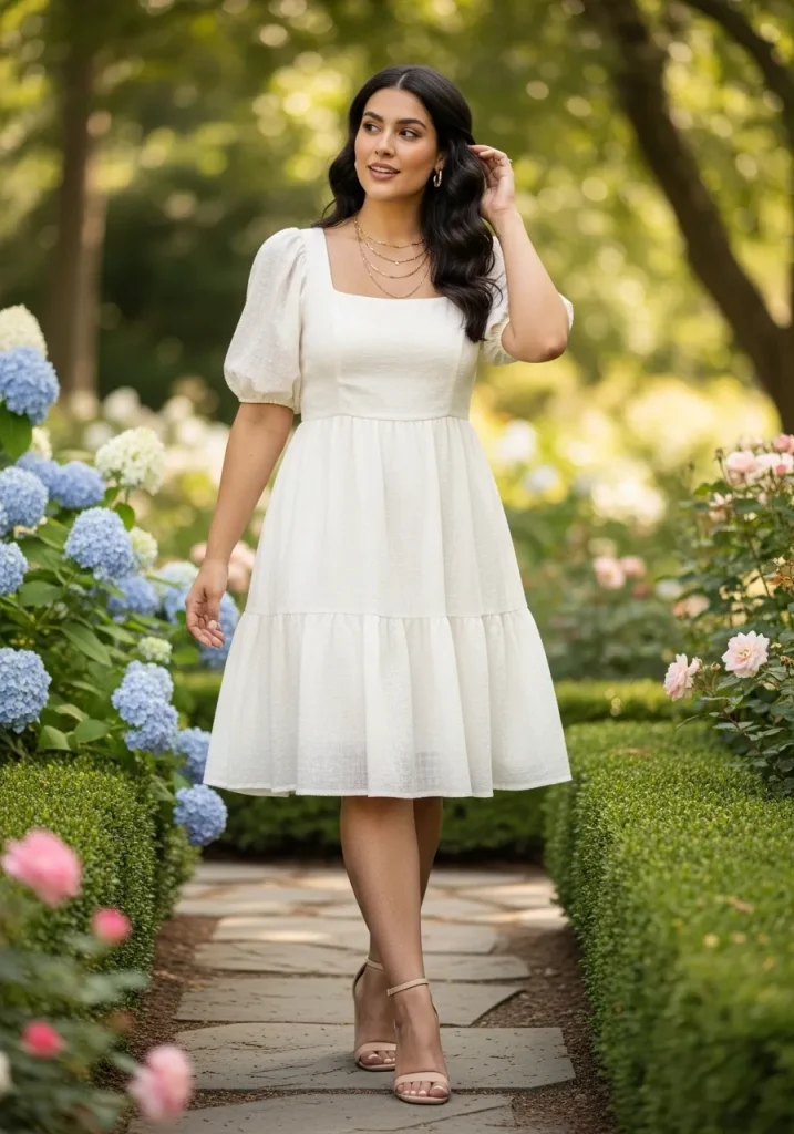 A square neck short dress offers a clean and modern silhouette while still feeling soft and feminine. The neckline adds structure and frames your collarbone beautifully, making the outfit look polished without needing heavy styling.
