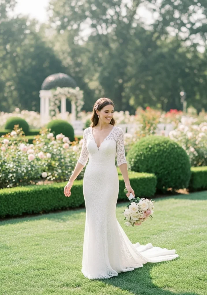 Pairing it with delicate heels enhances the overall elegance while maintaining comfort. You can add minimal accessories and soft waves in your hair for a complete romantic look. This outfit feels effortlessly graceful and wedding-ready.