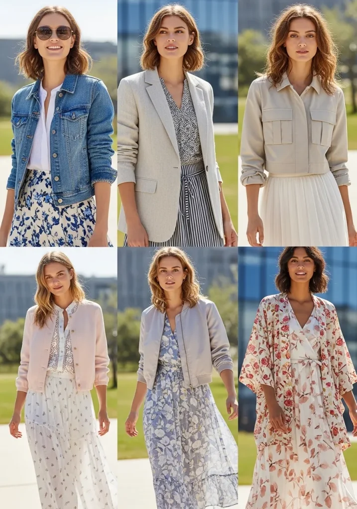 Opt for a simple styling outfit that features neutral tones or muted pastels, offering versatility and a timeless look. When choosing your lightweight jacket outfit, make sure the fit is flattering to your body type. Cropped styles are particularly popular, making them perfect for adding structure to flowy dresses or oversized shirts. As part of your spring wardrobe 2026, make sure to include these jackets as a staple for those breezy days in the office or casual outings.