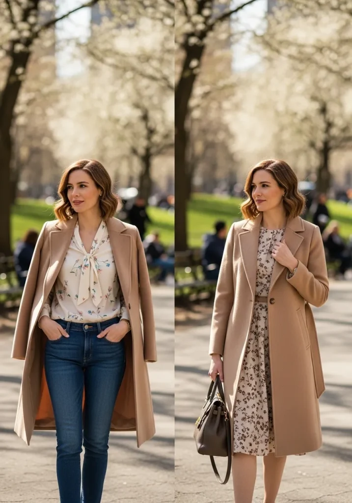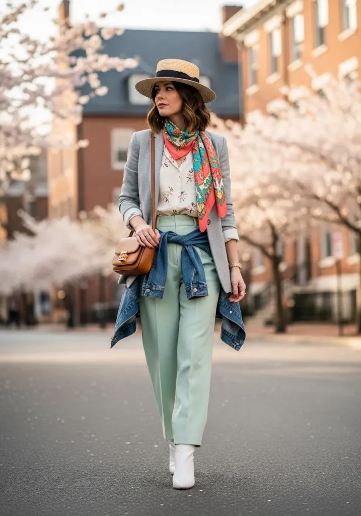 For a more casual take, opt for a chic cardigan or light trench coat that adds a touch of sophistication to your everyday style. This combination of formal and informal pieces gives you the versatility to move through your spring days with ease, whether you’re at the office or attending casual events.