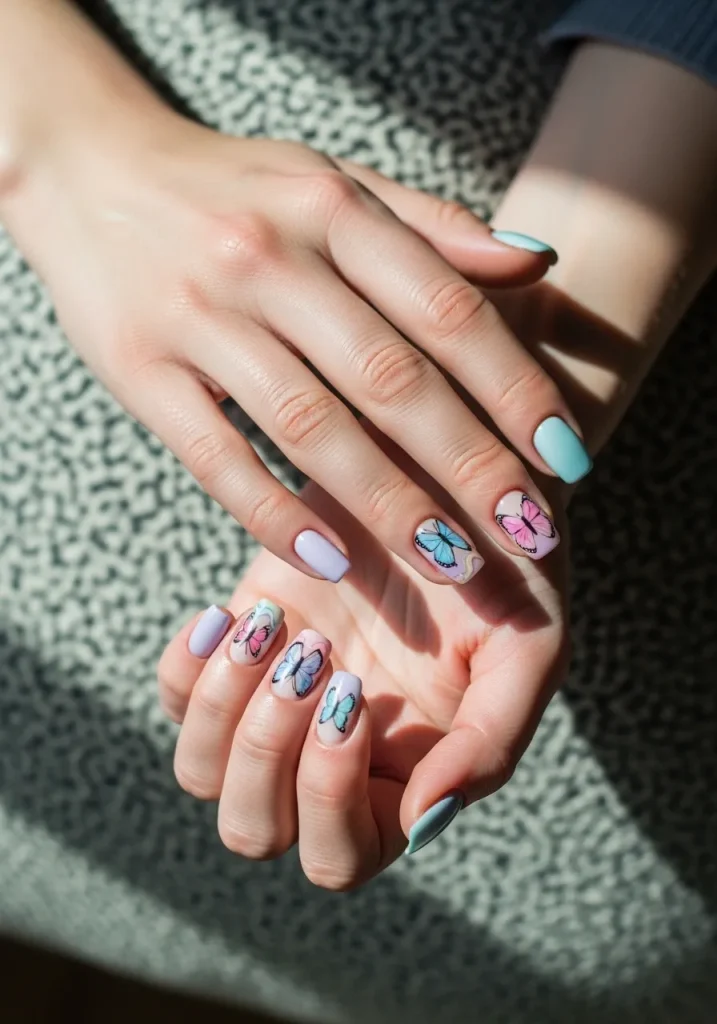 Butterfly nail art is soft, whimsical, and perfect for capturing that dreamy spring vibe. The delicate butterfly designs add a touch of femininity and movement, making your nails feel light and playful. Whether you choose pastel butterflies or more detailed designs, this look instantly stands out while still feeling elegant.