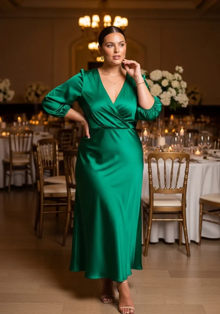 A vibrant Summer Emerald Dress For Wedding Guest bridges the gap between spring and early summer celebrations. The rich jewel tone feels luxurious while still looking fresh when styled in lighter fabrics like satin or silk.