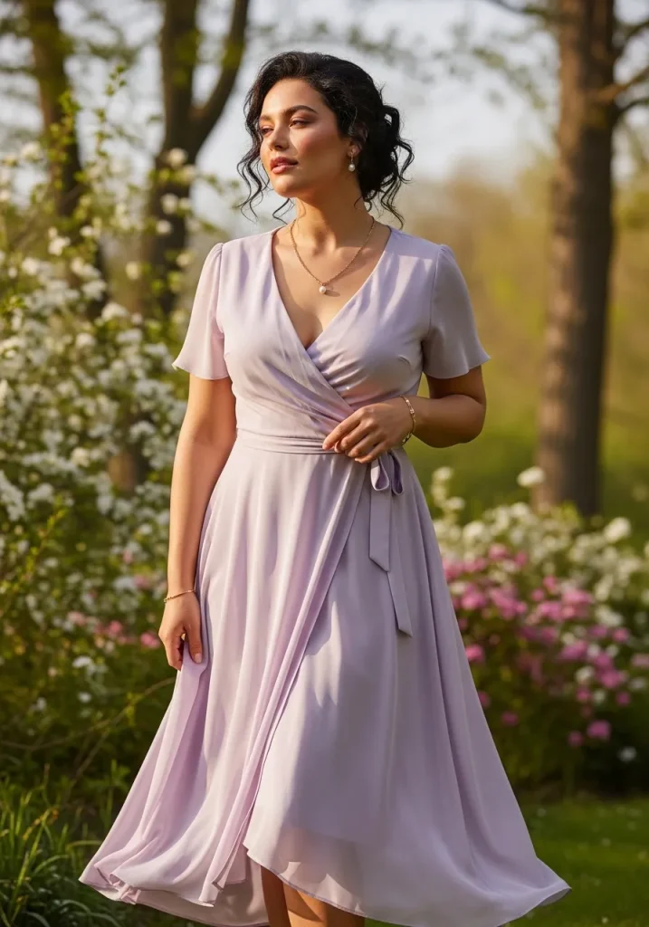 For ceremonies that aren’t strictly formal, a Spring Semi Formal Wedding Guest Dress like a wrap silhouette offers the perfect balance of comfort and elegance. The adjustable waist flatters curves beautifully while allowing ease of movement for dancing and mingling.