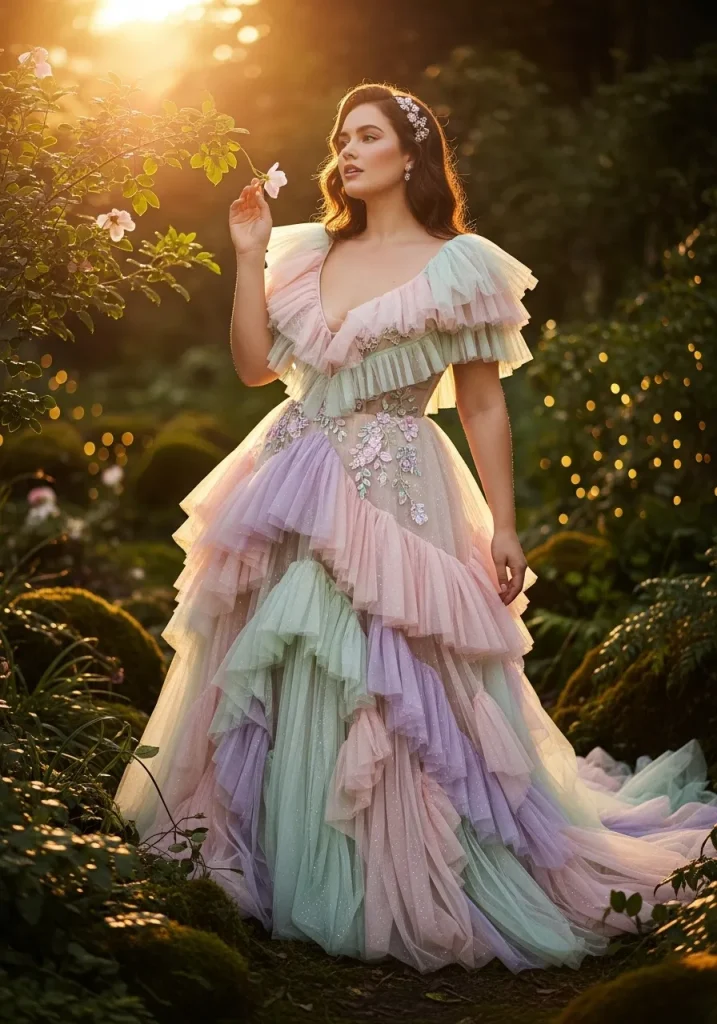 If you want a magical, whimsical look, an Elegant Fairy Dress With Ruffles brings storybook charm to spring celebrations. Layers of soft tulle or chiffon create volume while maintaining a light, airy feel. These dresses often feature delicate straps, sheer sleeves, or cascading ruffles that enhance movement.