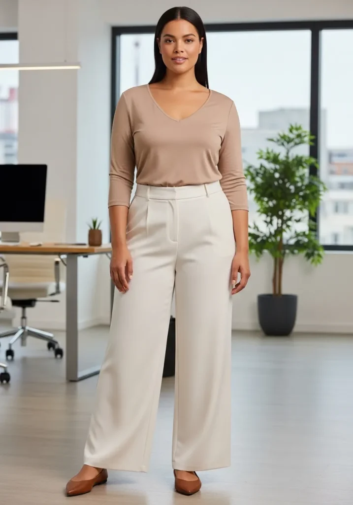 For footwear, ankle boots or simple loafers work well with this outfit. Choose accessories like a delicate scarf or a sleek handbag to complete the professional look. Whether you’re working from home or heading to the office, this combination ensures you stay comfortable and stylish throughout the day.