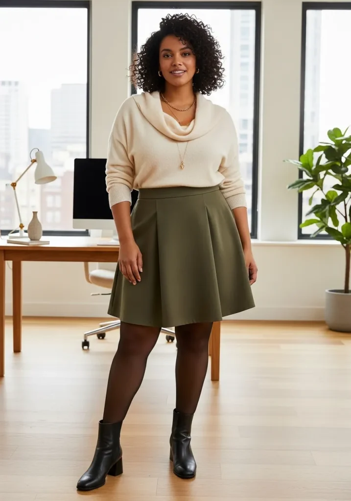 20. Cowl Neck Sweater and A-Line Skirt