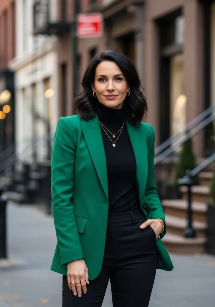 1. Emerald Blazer with Black Basics