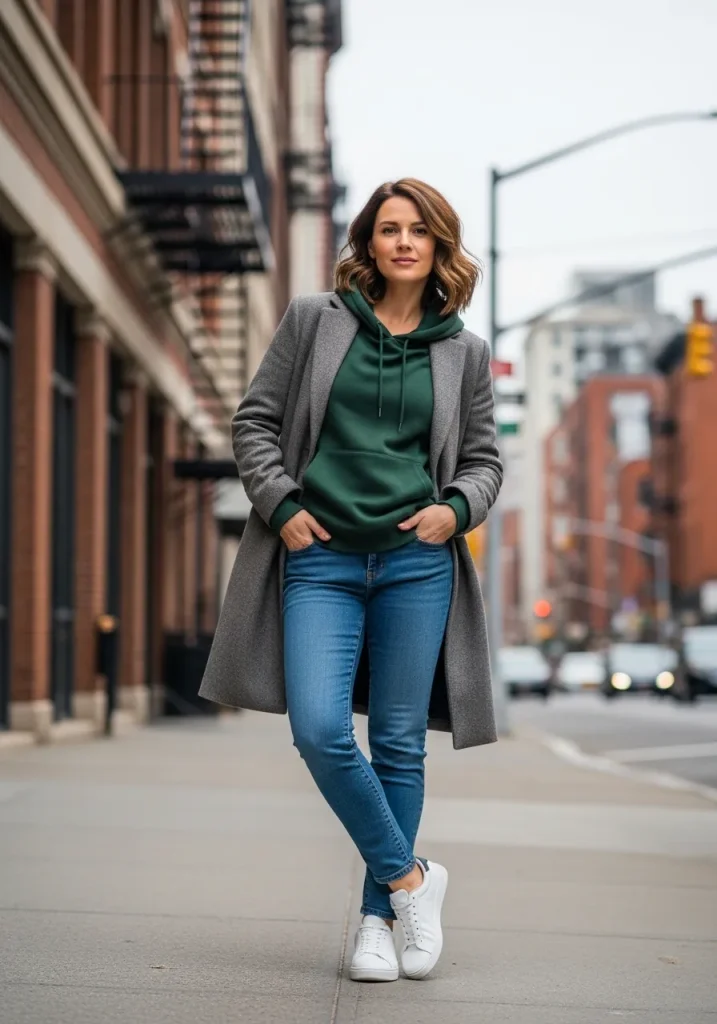 18. Cozy Green Hoodie with Tailored Coat
