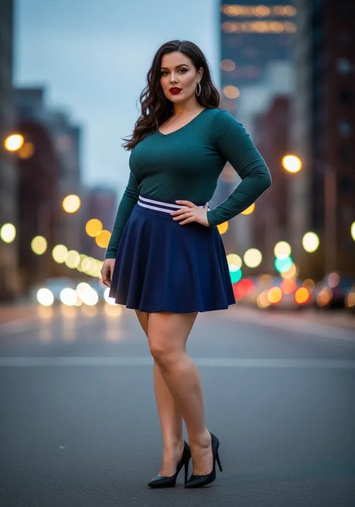 A tennis skirt styled with heels creates a unique mix of sporty and elegant elements. The heels elevate the outfit and make it suitable for dressier occasions while the skirt keeps the look playful.