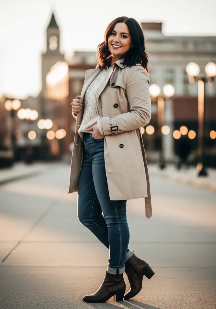 Trench Coat with Sweater and Jeans