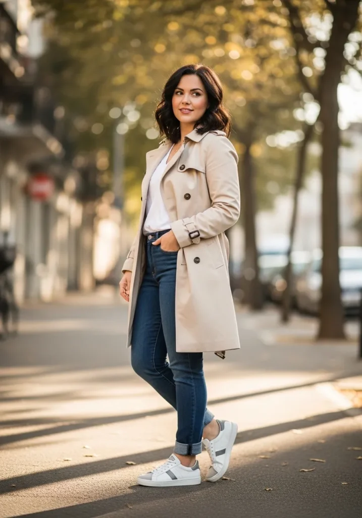 Trench Coat with Casual Sneakers Look
