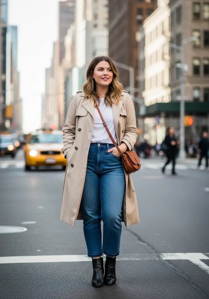 A classic trench coat is the perfect outerwear piece for transitional weather. It adds a timeless, sophisticated layer to your outfit without feeling too heavy or bulky.