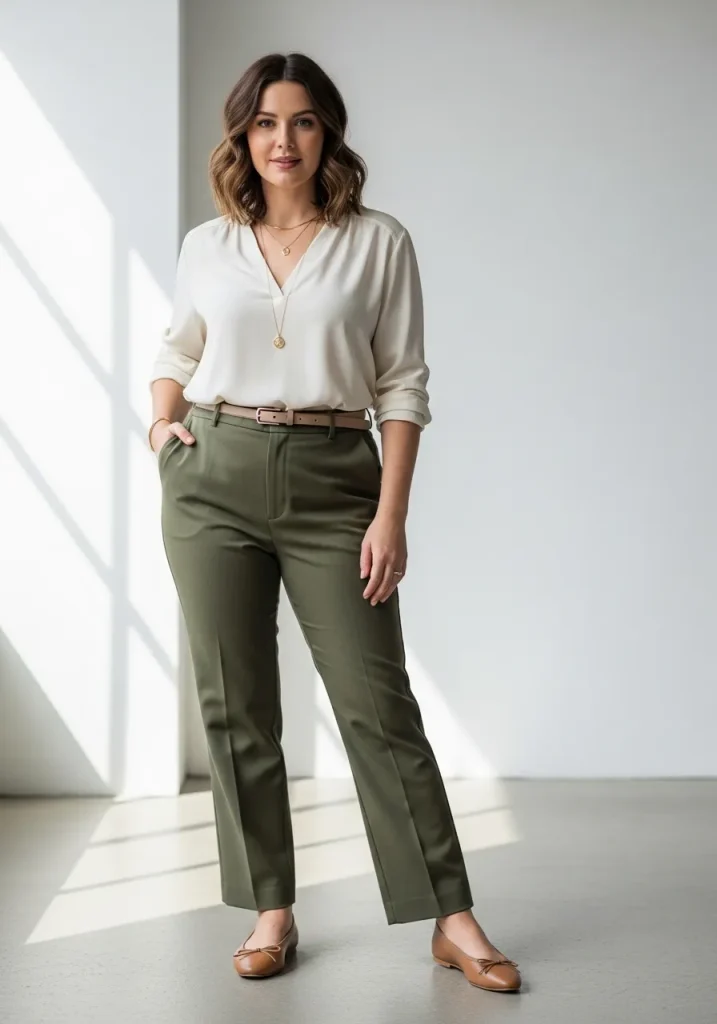 Ballet flats or loafers in neutral tones offer a polished yet relaxed feel. They’re especially useful for busy days when you’re on your feet but still want to look put-together.