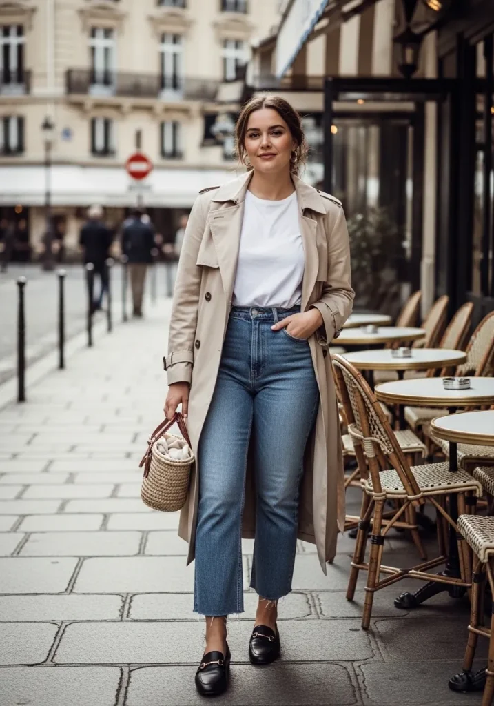A classic trench coat is the ultimate Paris spring essential. It’s lightweight yet polished, making it perfect for unpredictable spring weather. Pairing it with straight-leg jeans creates that effortless balance between casual and refined, which is exactly what Parisian style is all about.