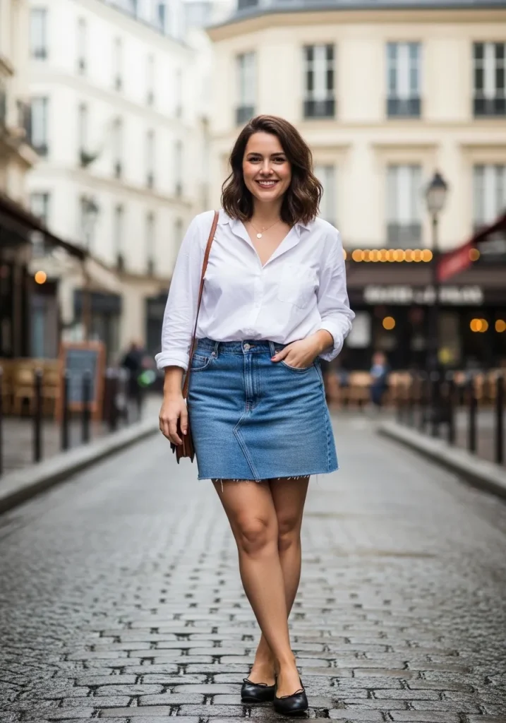 You can tuck in the shirt for a more polished look and add loafers or flats. Keep accessories minimal for that effortless Parisian vibe. This outfit is both comfortable and chic.
