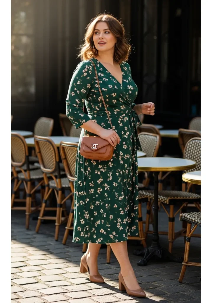 A wrap dress is universally flattering and perfect for spring in Paris. It creates a soft, feminine silhouette while still being comfortable enough for walking around the city all day.