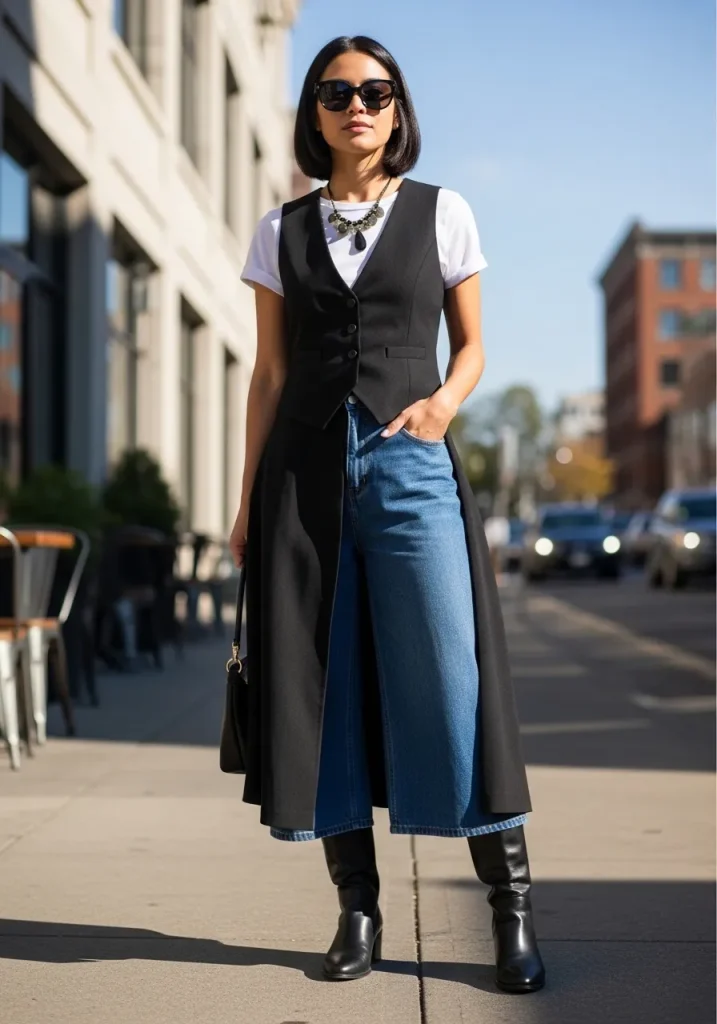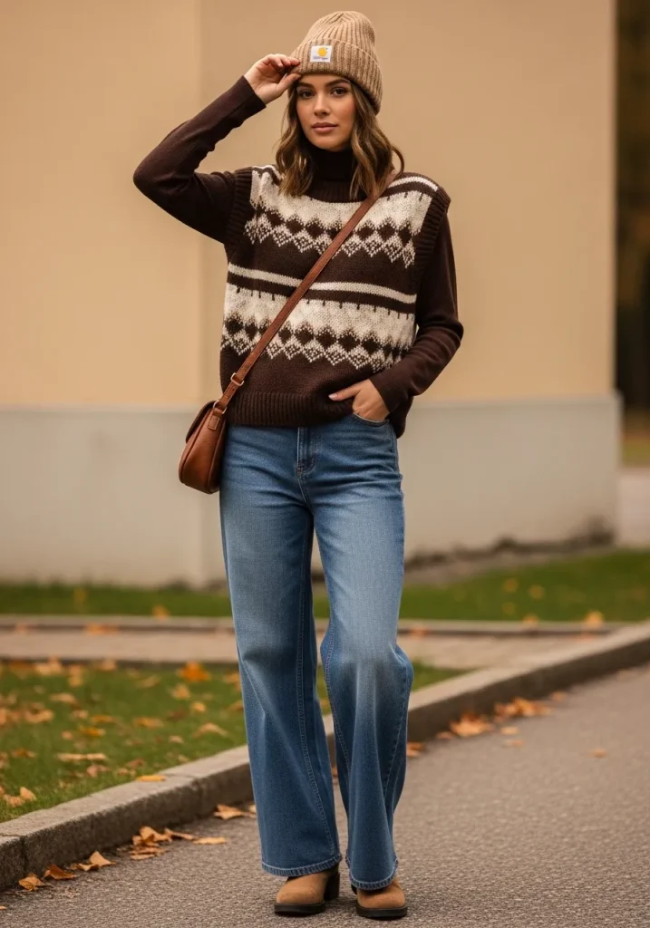 The sweater vest trend continues to grow, and it pairs perfectly with wide-leg jeans. Layering a sweater vest over a long-sleeve shirt adds both warmth and style. Choose a neutral-toned sweater vest or opt for something with stripes or patterns to create a more interesting ensemble.