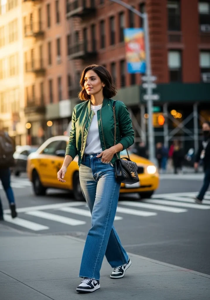 A fitted jacket, like a bomber or cropped jacket, can provide structure to the wide-leg jeans, making it an ideal option for a balanced and stylish look. The jacket’s tailored shape contrasts with the wide legs, creating an effortlessly chic silhouette.