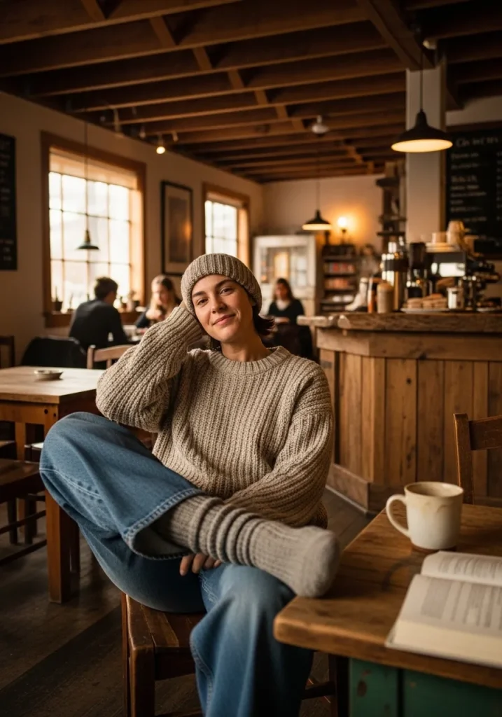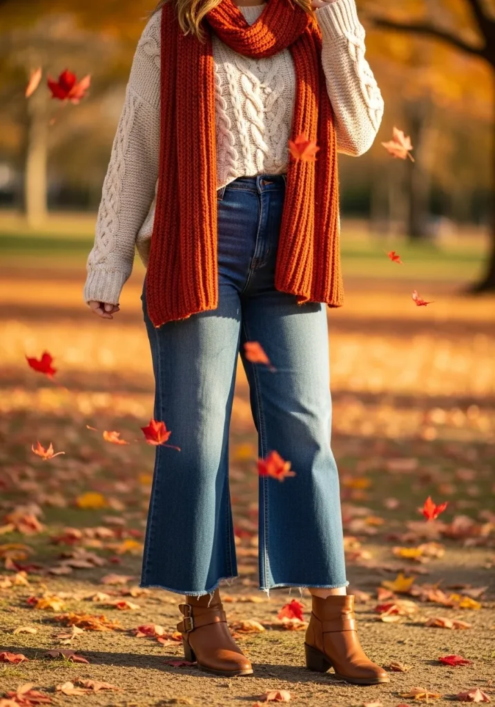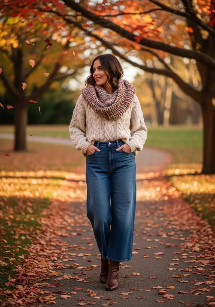 For footwear, go for boots or sneakers to add balance. A beanie or wool hat will complete the cozy fall vibe, making this outfit perfect for chilly days.