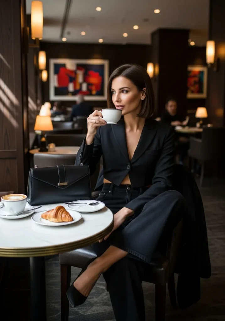 To break up the look and add dimension, opt for accessories in the same color family but different textures. Pointed-toe heels or sleek boots work well with this style, and a minimalist clutch can finish off the outfit. This is a great choice for a polished look that’s easy to put together yet looks high-fashion.