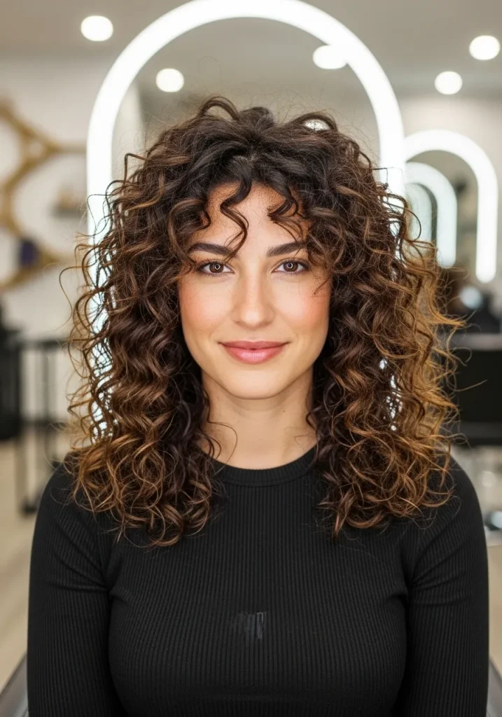 Voluminous curly layers are perfect for embracing natural texture while creating a flattering shape. The layers help distribute volume evenly, preventing the hair from feeling heavy. It’s ideal for enhancing curls while maintaining definition. This haircut feels bold and full of life.