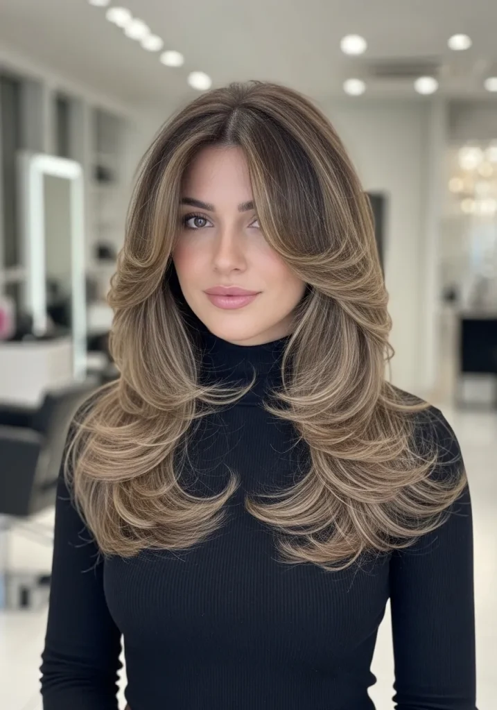 Long layers with face-framing pieces create a soft and flattering silhouette that enhances your natural features. The layers add dimension while keeping the length intact, making it perfect if you love longer hair. The face-framing pieces highlight your cheekbones and jawline beautifully. This haircut feels feminine and elegant.